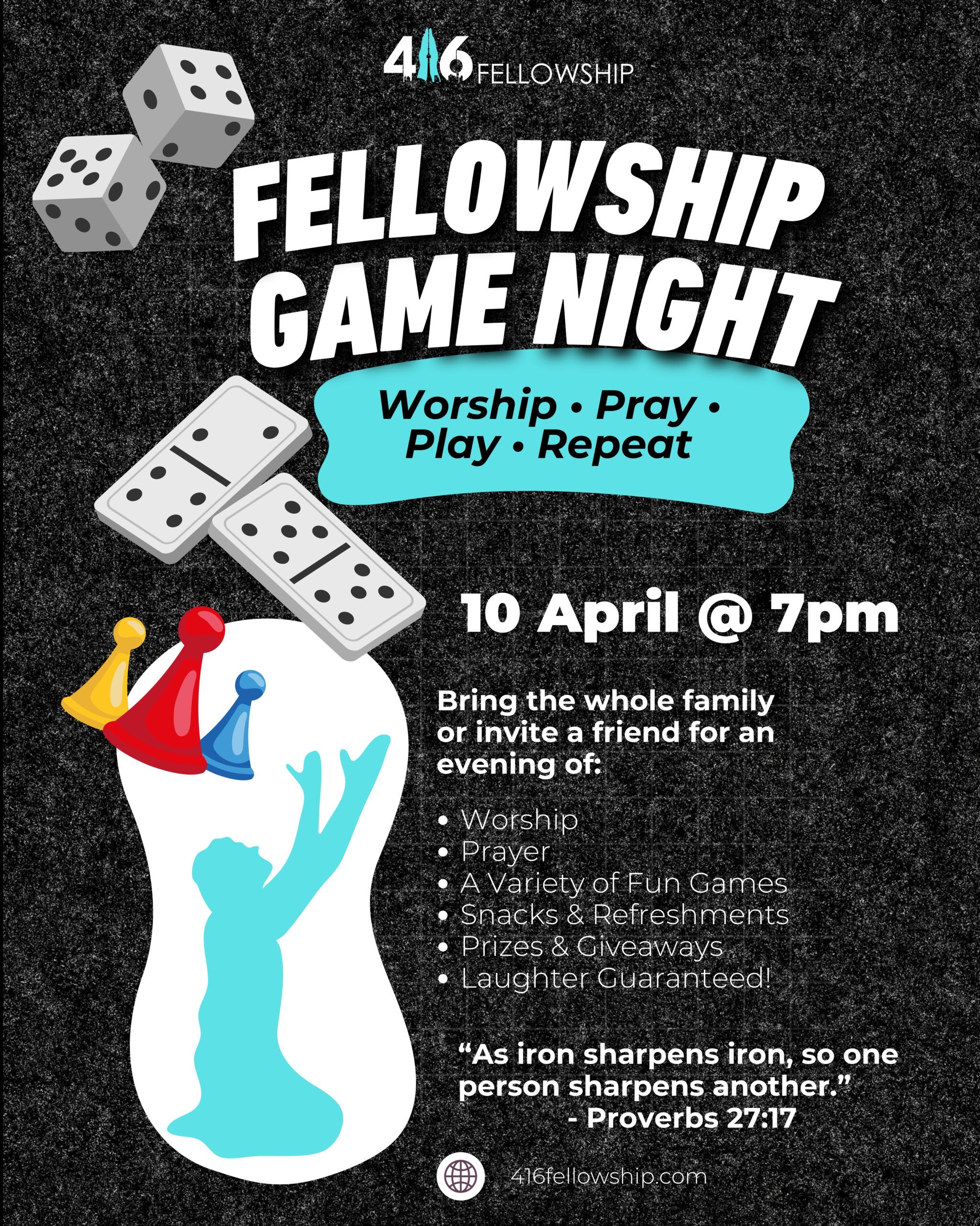 Join us every other Friday for Fellowship Game Night, a vibrant and welcoming space where fun and faith meet! It’s a Christ-centered space where faith is strengthened, friendships are formed, and hearts are encouraged. Rooted in worship and prayer, and filled with joyful moments of laughter, fun, and genuine connection, we grow together in the grace and knowledge of our Lord Jesus Christ—becoming more like Him as we build lasting relationships that reflect His love. Check out the flyer below for details on our next Fellowship Game Night. We can’t wait to welcome you!